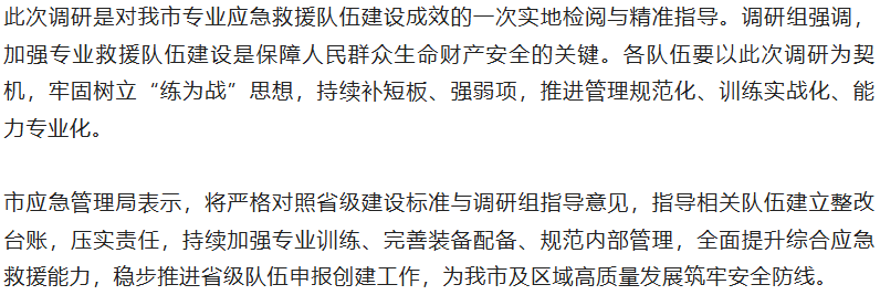 省应急厅调研指导我市专业应急救援队伍建设