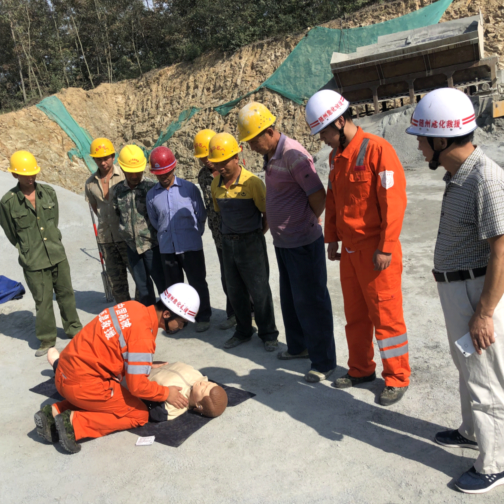 演练共分为:参加演练人员集结、现场模拟伤者受伤倒地、伤者工友大声呼救、现场管理人员发现事故后立即向指挥组汇报情况、指挥长接到汇报后立即组织救援、应急救援组迅速赶往事故地点、了解情况,对伤者进行简单救护后将伤者送往医院、演练总结等过程,参加人员10人。
