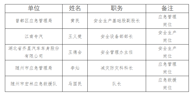 根据《中共湖北省委宣传部湖北省应急管理厅湖北省总工会关于印发2021年第二届“荆楚楷模·最美应急人”宣传展示活动方案的通知》(鄂应急发〔2021〕6号)文件要求,经过各地推荐、广泛听取意见、充分酝酿后,完成了评选对象的初步推荐工作,现将拟推荐名单公示如下: