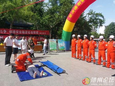 活动采用发放宣传资料、制作宣传展板、印制宣传册、现场讲解演示、播放视频等方式,全面的介绍安全生产新技术、新知识,宣传了防火、避险、避震等防灾减灾和应急救援相关知识。在市安监局展区前,安监局工作人员正在展牌前向过往市民介绍应急管理、安全生产相关知识;在随州市消防支队展区前,消防宣传车正滚动播放全国各地火灾发生时血淋淋的案例,消防队员现场讲解灭火器使用方法、消防服穿戴、应急逃生、应急指示灯等消防知识;宏林应急救援队现场演示心肺复苏紧急抢救的方法,应急救援设备的使用等知识。