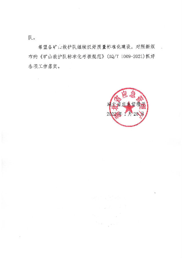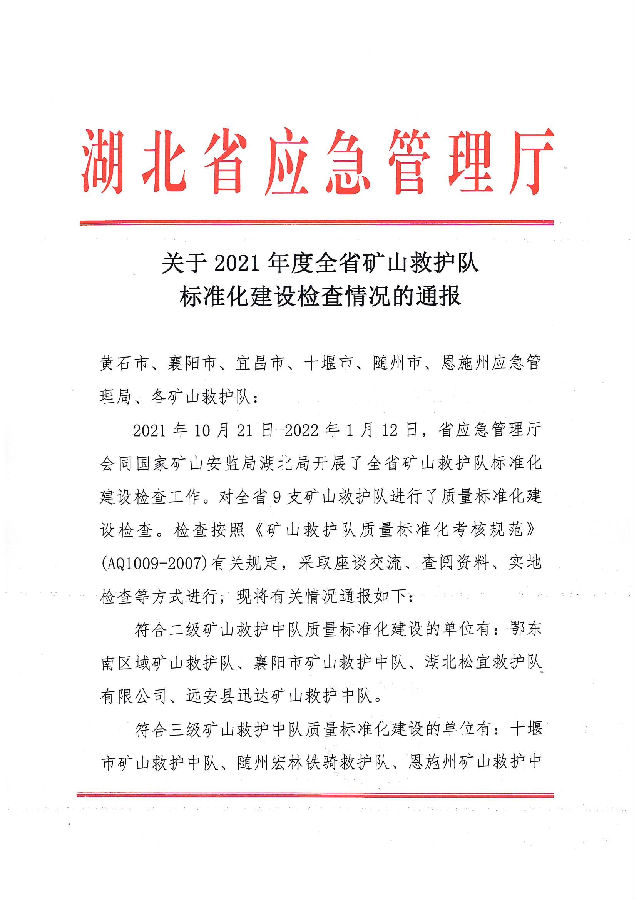 关于2021年度全省矿山救护队标准化建设检查情况的通报